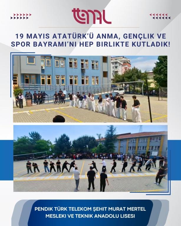 19 Mayıs Atatürk'ü Anma, Gençlik ve Spor Bayramı, okulumuzda büyük bir coşku ve katılımla kutlandı. Gazi Mustafa Kemal Atatürk’ün Samsun’a çıkarak bağımsızlık mücadelesini başlattığı bu anlamlı gün, gençliğe armağan edilen bir bayram olarak öğrencilerimizle birlikte coşkuyla anıldı.