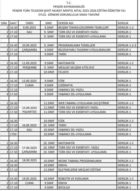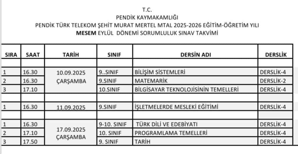 2025-2026 Eğitim Öğretim Yılı Eylül Dönemi Sorumluluk Sınav Takvimi Yayınlandı