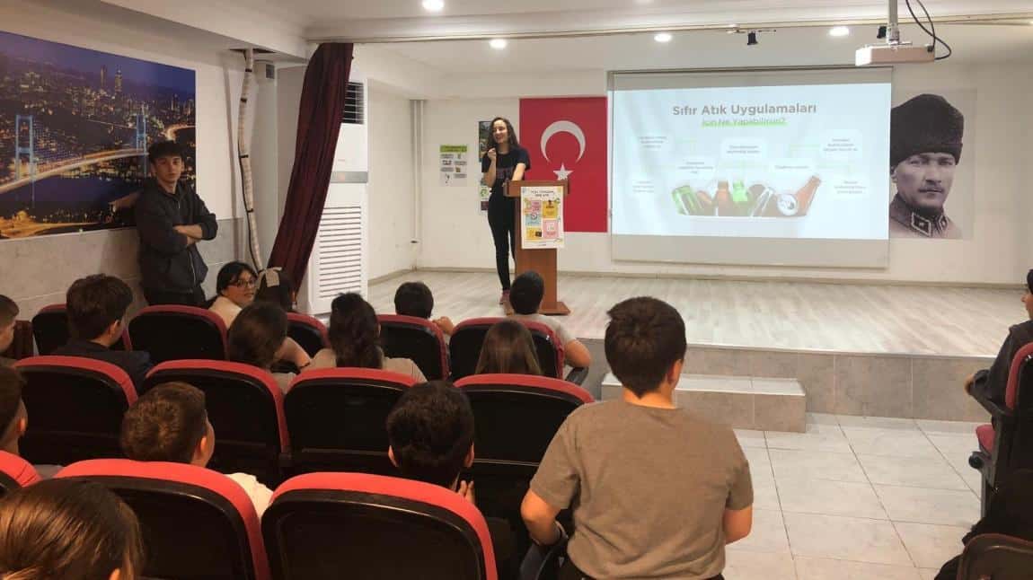 Ben de varım projesi kapsamında öğrencilerimiz Faruk Demirbağ artaokulu öğrencilerine Yesil Dönüşüm ve Sıfır Atık konulu sunumlarını yaparak konunun önemini anlatmışlardır.