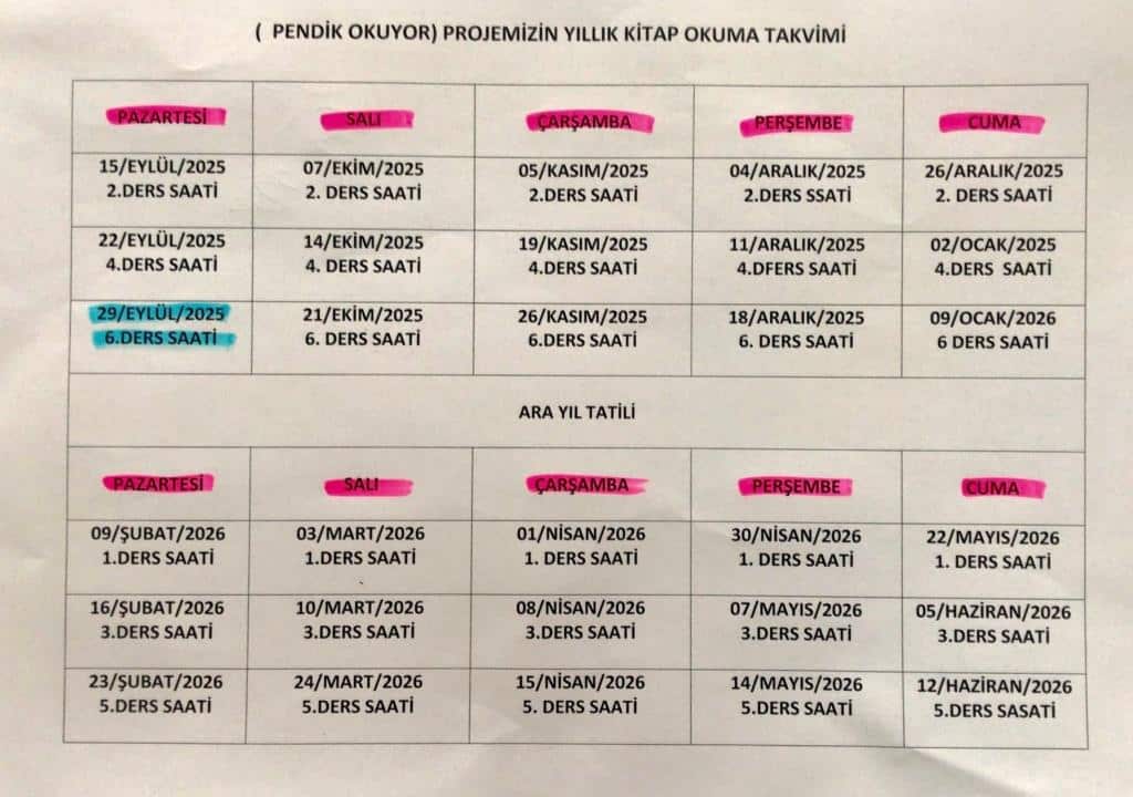 Sevgili öğrencilerimiz okuma saatlerimiz belli oldu! Her hafta düzenli olarak kitaplarla buluşacağımız saatleri